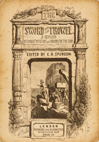 查尔斯・司布真(C.H. Spurgeon)的《刀剑与抹子》(The Sword and the Trowel)杂志封面,使用尼希米记4章的意象:「属灵争战与建造事工并行。」(图片来源/WIKIMEDIA COMMONS)
